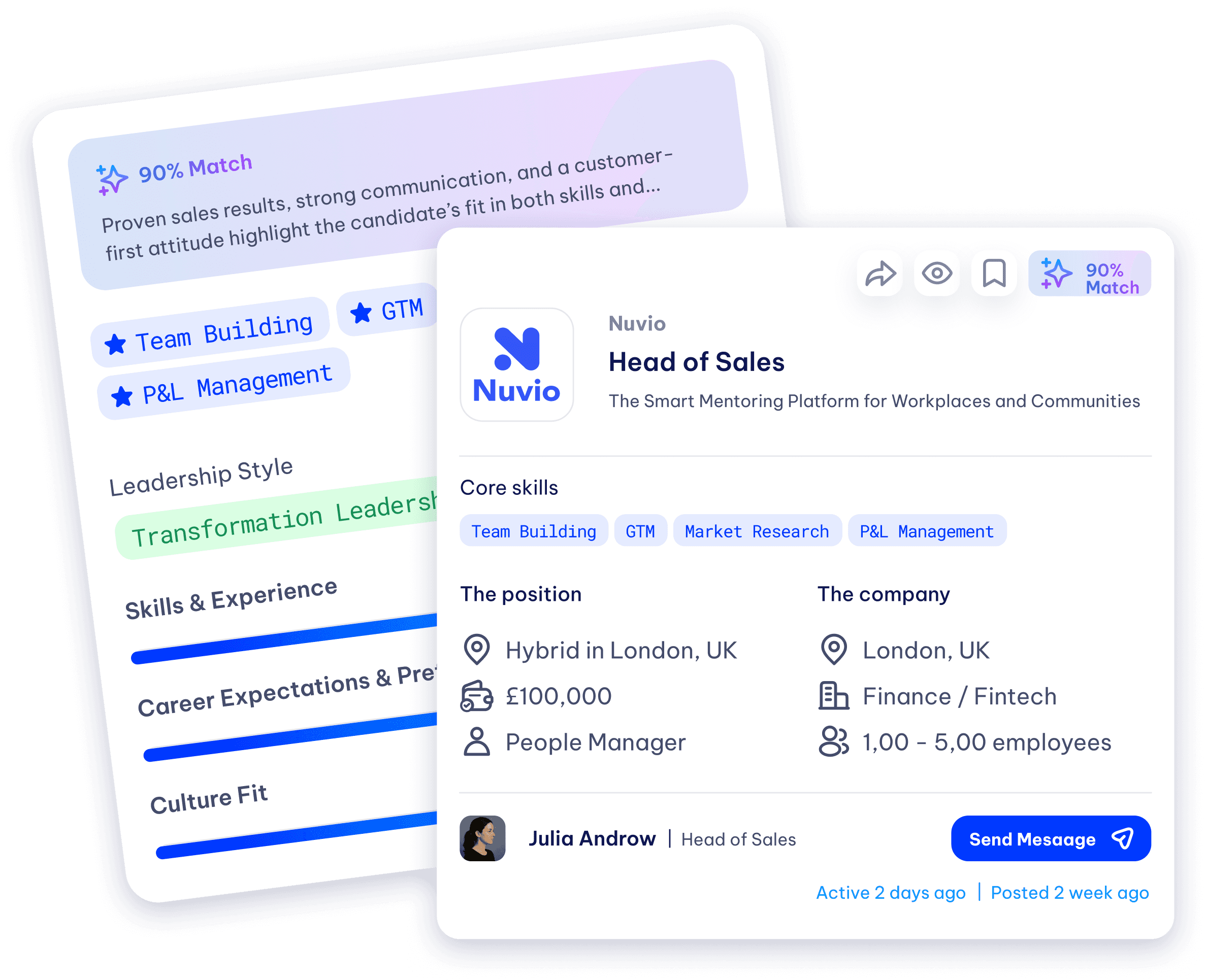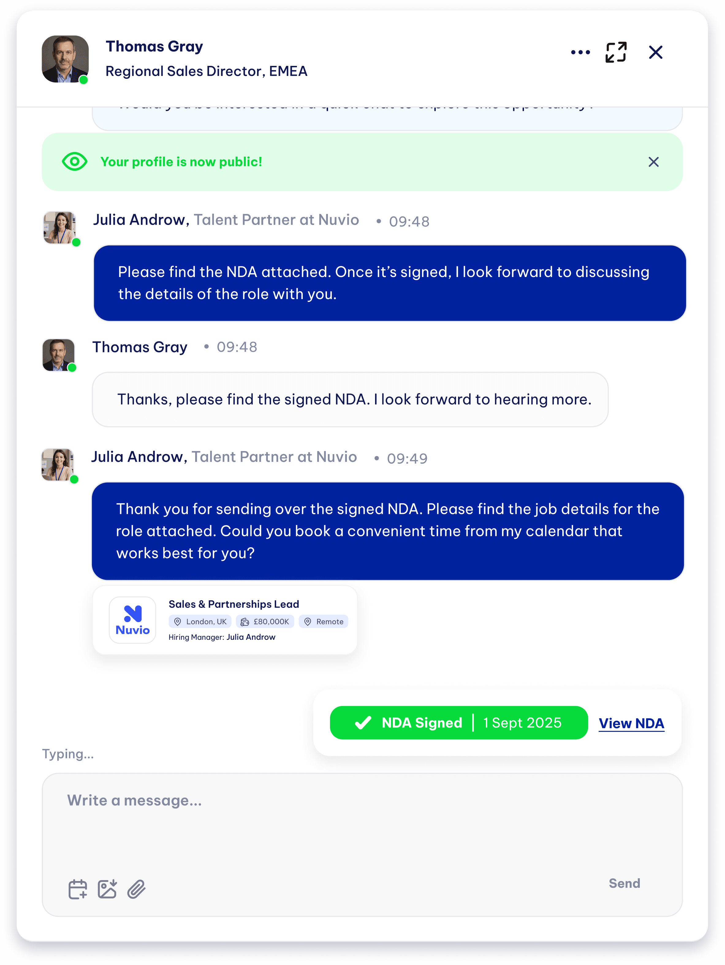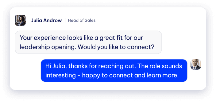 "Three conversations with hiring managers before my boss even knew I was looking. Exactly how senior hiring should work."