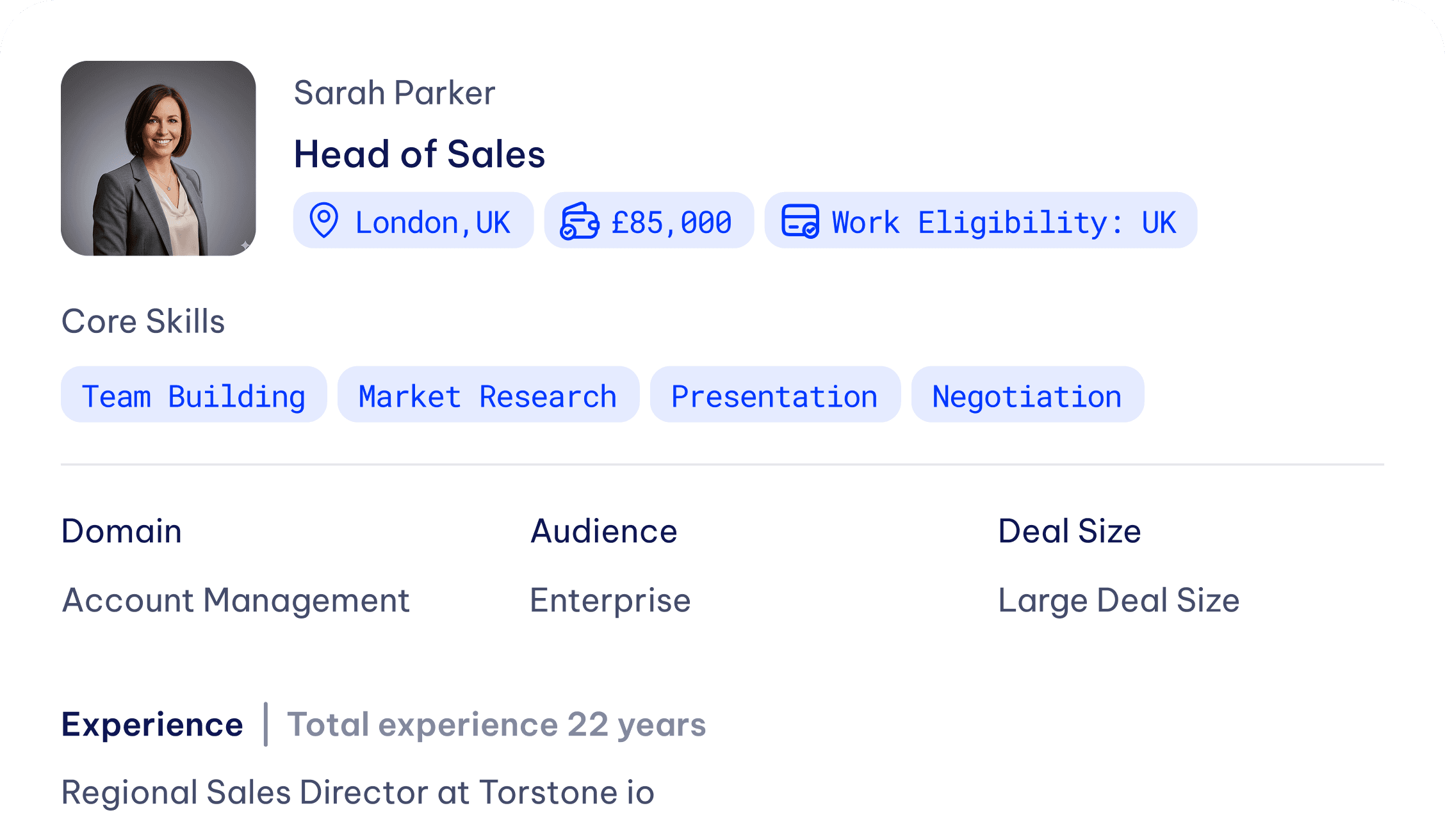 We confirm you've held senior positions (mid to executive level) or led strategic commercial initiatives in sales, marketing, or growth. Companies need to know you operate at the level they're hiring for.