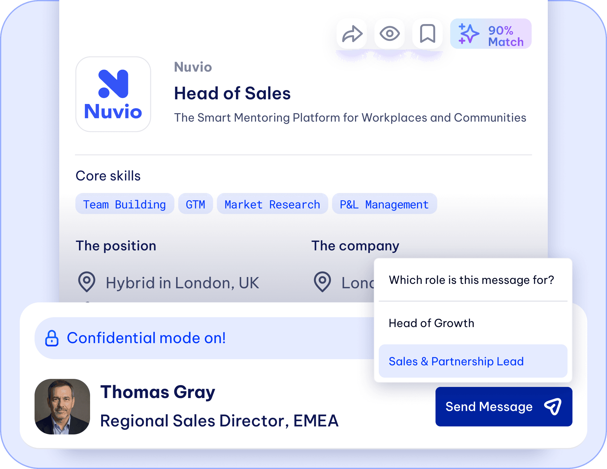 A simple, private hiring flow built for senior roles